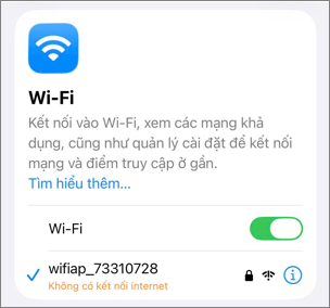 Trên thiết bị truy cập, hiện thông báo “Đã kết nối” hoặc tương tự là đã kết nối thành công. Thiết bị truy cập sẽ hiển thị thêm “Không có Internet” hoặc tương tự, nguyên nhân là do thiết bị chỉ kết nối tới Wifi trên GT-MDVR02 thông qua mạng cục bộ không dây, không kết nối tới Internet.