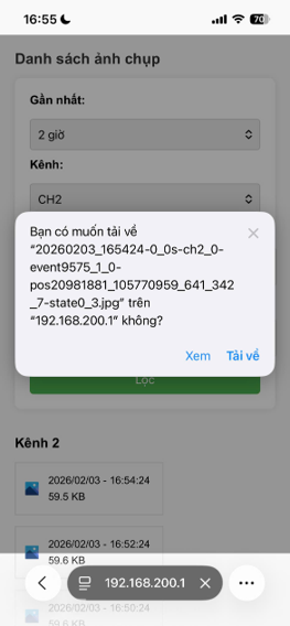 Lựa chọn các tiêu chí lọc theo thời gian hoặc theo kênh sao cho phù hợp với nhu cầu trích xuất. Nhấn vào ảnh cần trích xuất và chọn "Tải về"