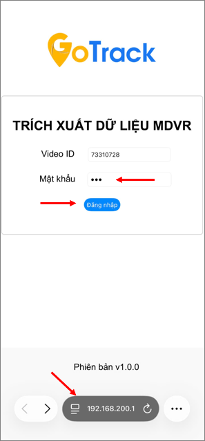 - Web Login: Địa chỉ truy cập trang trích xuất (8 ký tự cuối imei của thiết bị),