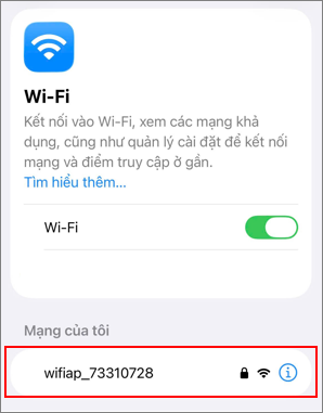 Trên thiết bị trích xuất, bật Wifi và tìm kiếm điểm phát Wifi có tên là thông WiFi Name