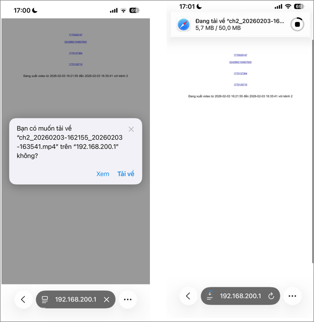 Tại trang menu, chọn “Tải video ghi hình” để truy cập trang trích xuất dữ liệu video. Khuyến nghị quay ngang màn hình trên thiết bị Smartphone để hiển thị tốt hơn.